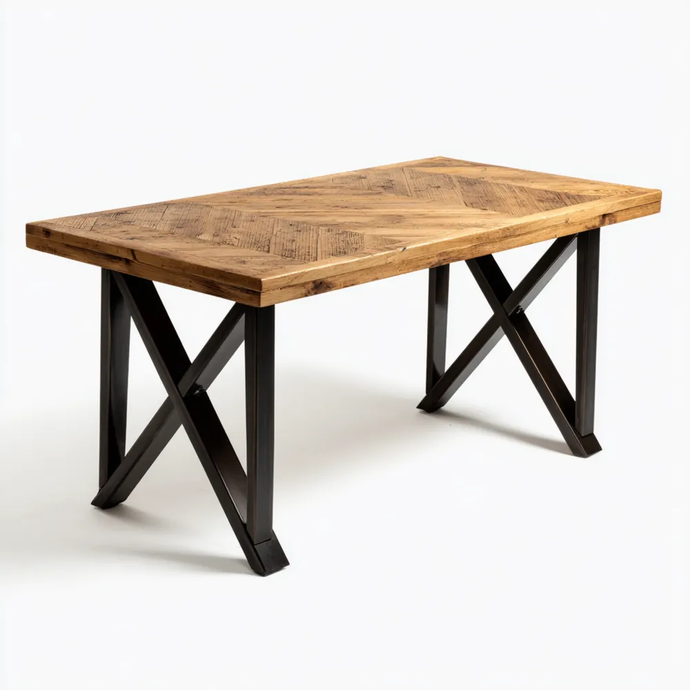 Material und VerarbeitungDie Tischplatte besteht aus hochwertigem Massivholz in Naturton und zeigt eine ansprechende Maserung. Die stabilen Tischbeine aus schwarzem Metall verleihen dem Tisch seine industriellen Akzente.