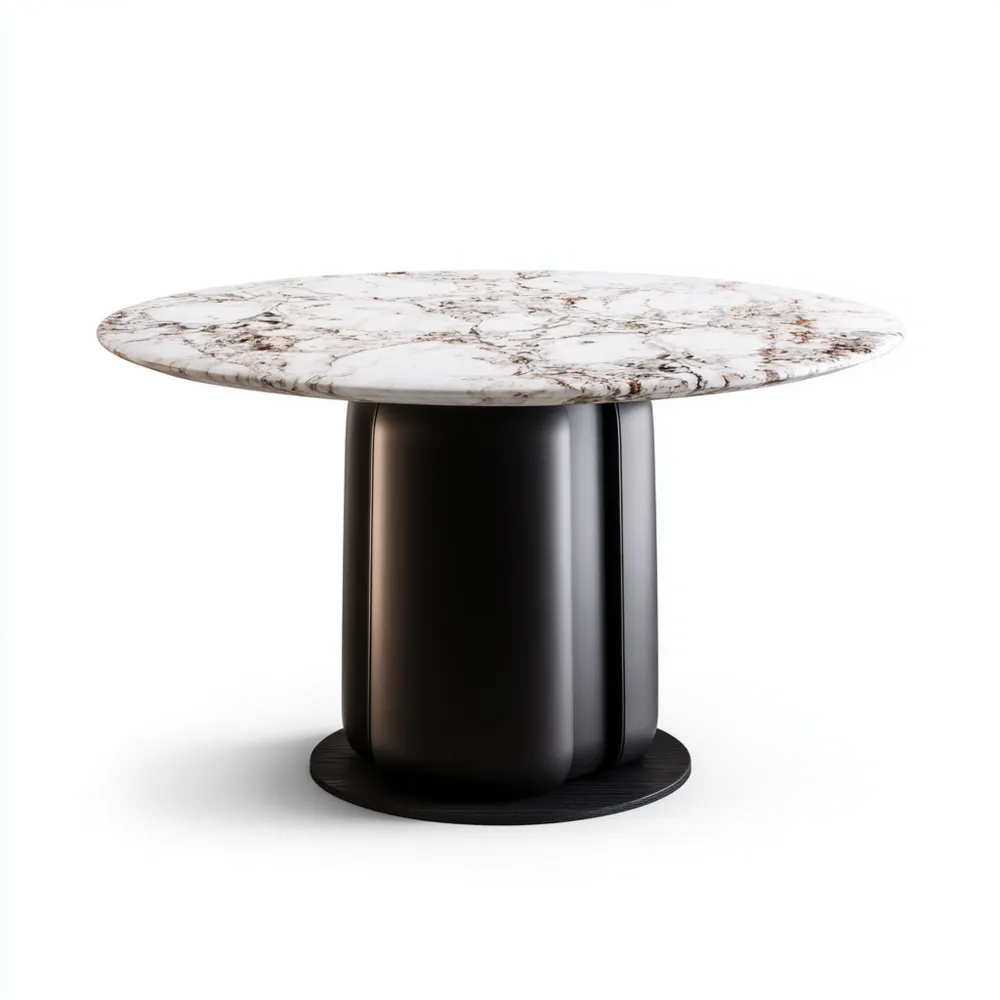 Material und VerarbeitungDie Tischplatte besteht aus hochwertigem Marmor in Weiß mit eleganten schwarzen Adern. Der stabile Fuß ist aus robustem Metall in Schwarz gefertigt.