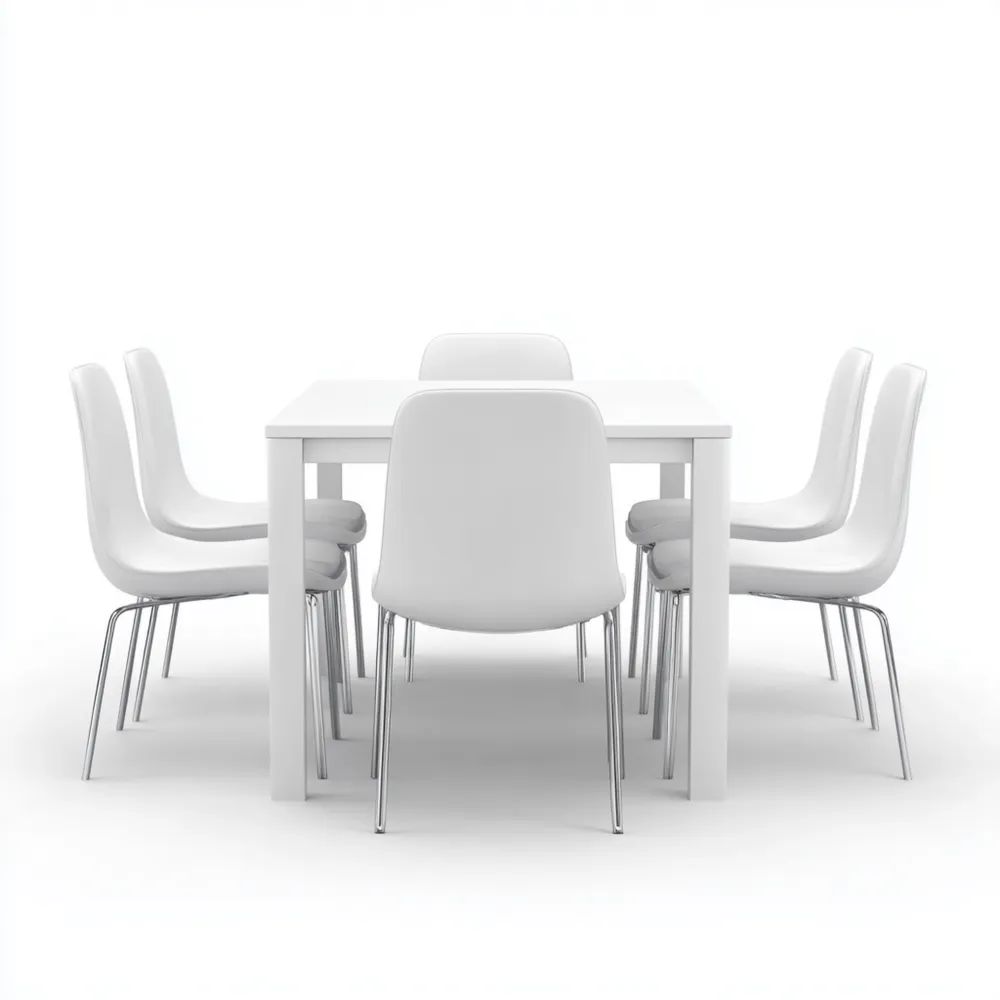 ProduktbeschreibungDieses stilvolle Esszimmer-Set besteht aus einem rechteckigen Tisch und sechs passenden Stühlen, die Ihrem Essbereich eine moderne Note verleihen.